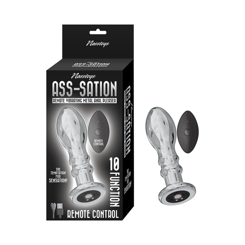 Ass-Sation brings together metal and vibration for orgasmic results. For lovers of metal sex toys you can now take part in a vibration in your favorite material sensation. Explore 10 different vibrating functions using the controls on the toy or the handy remote control. Try immersing the Ass-Sation Remote Control Vibrating Metal Butt Plug in warm or cool water beforehand for fun sensation play. The Pleaser Plug comes in a sleek design that features a rounded tip and prostate-pleasing bulb. The bulb is ergonomically shaped to hit the nerve-ending packed prostate perfectly once fully inserted. The Pleaser Plug is sized for intermediate level manageability – precision tapering gradual widening and a nice slim neck combine to make it easy to insert simple to maneuver and comfortable for longer term wear thanks to a nice flat base and remote control. Use with any of your favorite lubricants. After use carefully wash the toy with mild soap and water or Toy Cleaner for even quicker cleanup.
