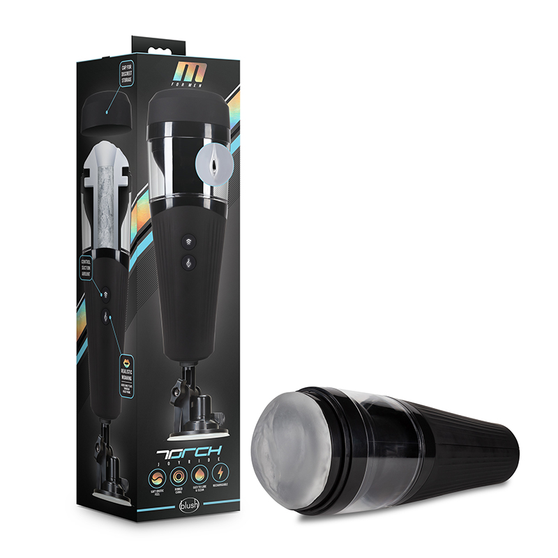 Blush M for Men Torch Joyride Rechargeable Hands-Free Thrusting Masturbator Frosted
