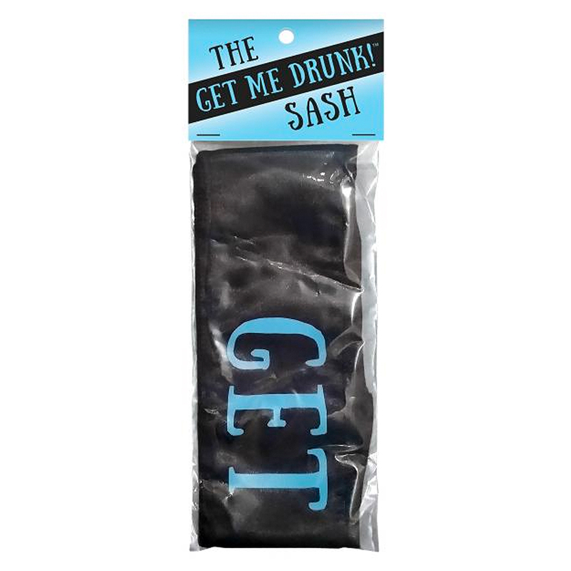 A black sash which reads GET ME DRUNK! in blue lettering. Great for birthday bachelor bachelorette parties retirement or divorce parties where you want the guest of honor to receive plenty of drinks. One size fits most.