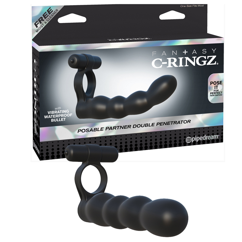 Pipedream Fantasy C-Ringz Posable Partner Double Penetrator Vibrating Cockring Black