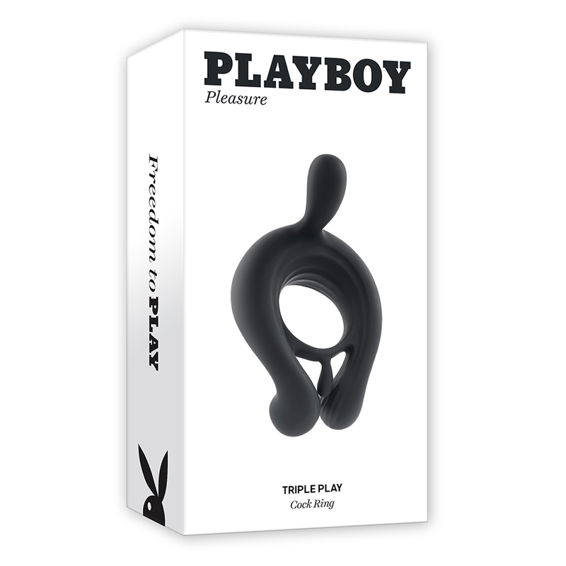 Playboy Triple Play Vibrating Cockring with Stimulator Black