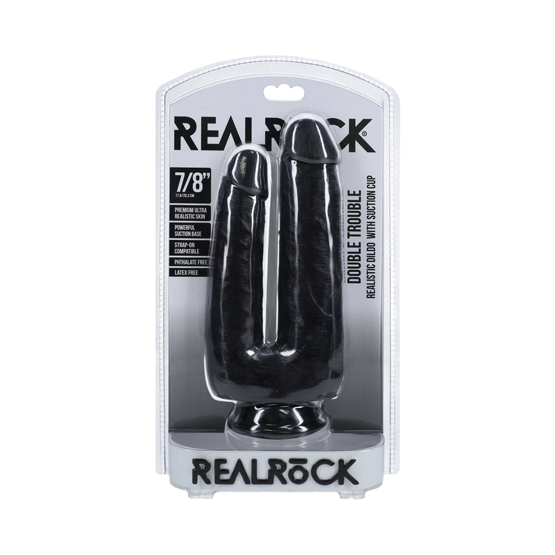 RealRock Double Trouble 7 in. / 8 in. Dildo Black