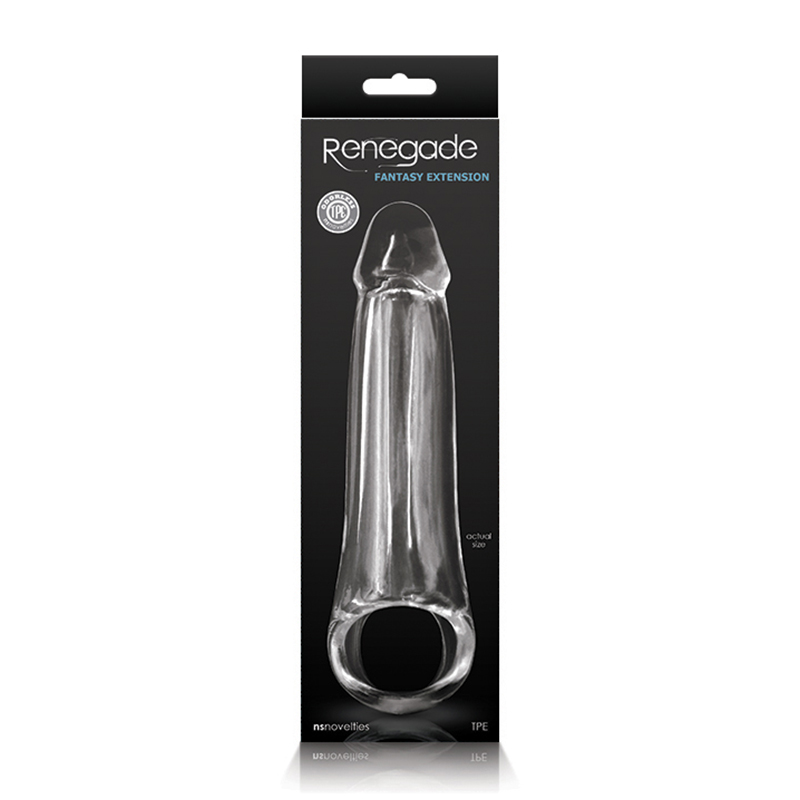Renegadeís clear penis extension provides enhanced visual excitement added girth and length for heighten sensations and pleasures. Made of odorless body-safe TPE and available in assorted sizes. Suitable with all lubricants. SIZE: MEDIUM COLOR: CLEAR