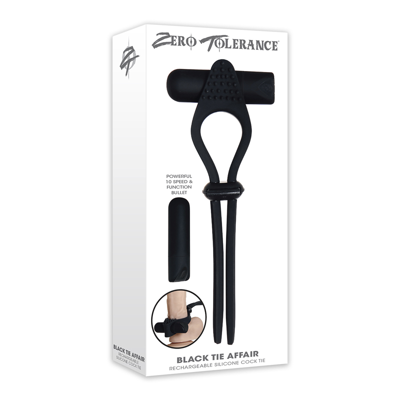 Zero Tolerance Black Tie Affair Rechargeable Silicone Cock Tie Cockring Black